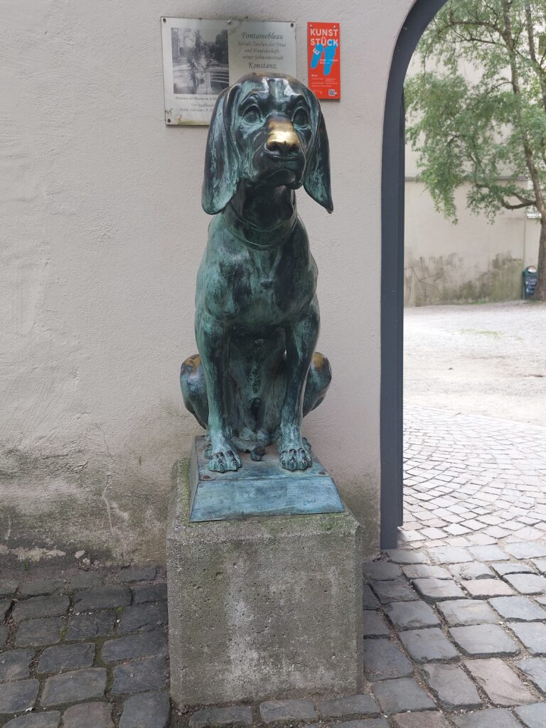 Piccola curiosità: nel giardino troverete anche la statua di un cane, donata dalla città gemellata di Fontainebleau, a cui evidentemente toccare il naso porta fortuna.