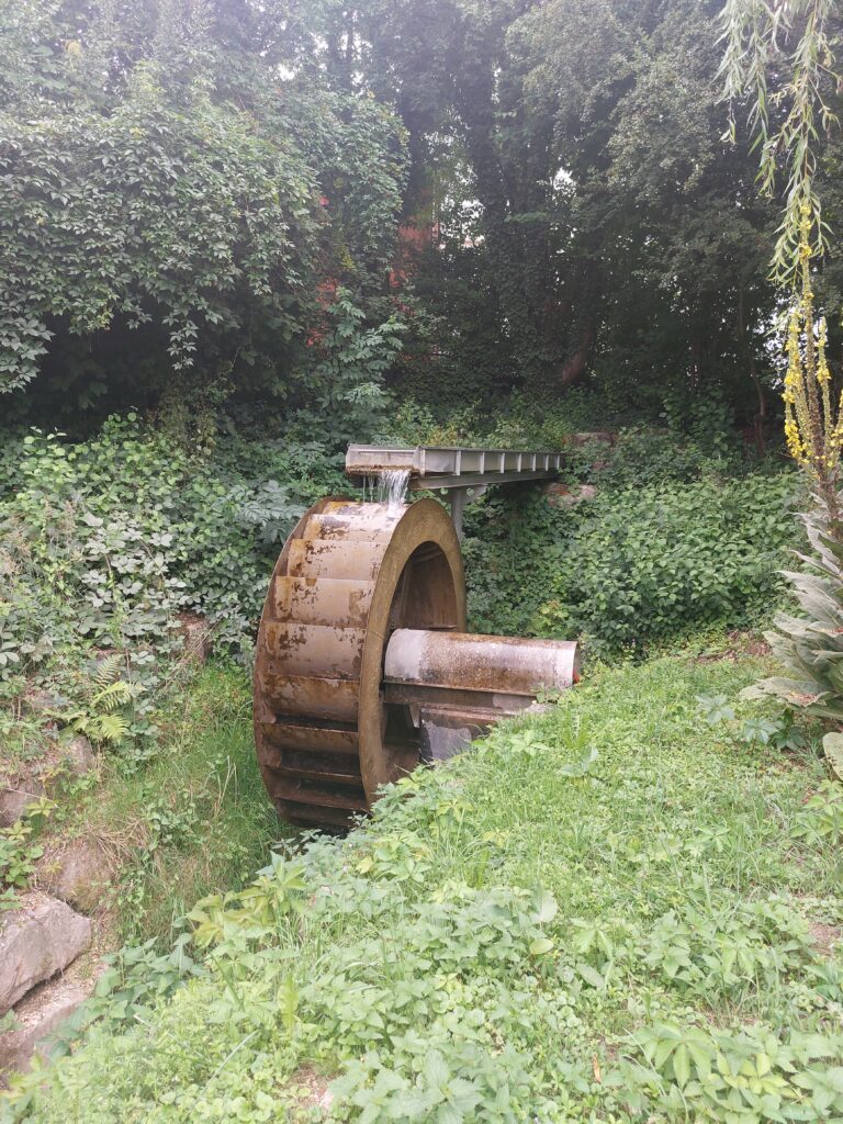 Una volta sistemato per bene Stephen (praticamente mai avremo bisogno dei cunei durante questo viaggio), ci siamo avviati verso il centro del paese e, dopo pochi passi abbiamo incontrato un bel mulino che sfrutta un piccolo torrente: da solo produce 2,2 kW di energia, potrebbe quasi alimentare un appartamento!