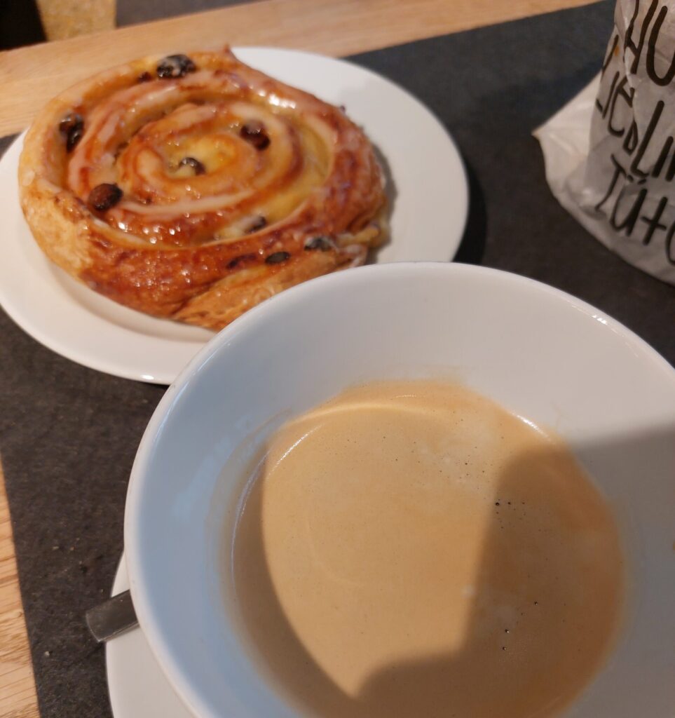 Abbiamo poi finito il nostro pranzo in un altro banchetto con dolce (girella a forma di rosa con uvetta) e caffè (a quanto pare da loro il caffè “piccolo” è enorme).