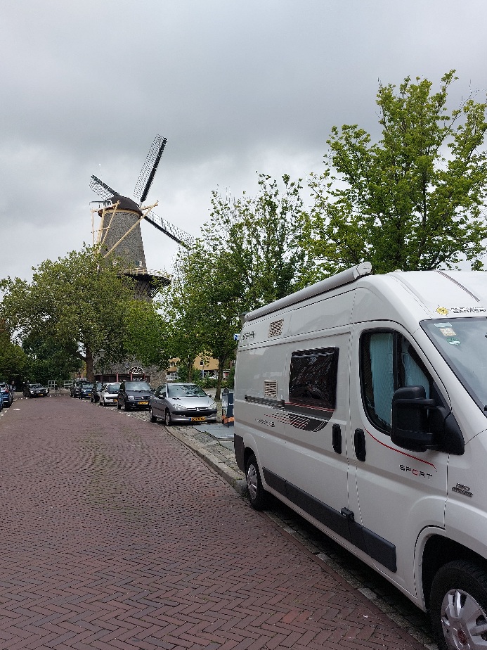 Proprio sotto i mulini di Schiedam c’è anche una piccola area sosta camper.
