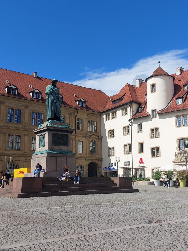 Poco lontano siamo però arrivati in Schillerplatz, che ci è piaciuta molto di più! La piazza è dedicata al poeta, filosofo e medico Friedrich Schiller, la cui statua è eretta al centro.